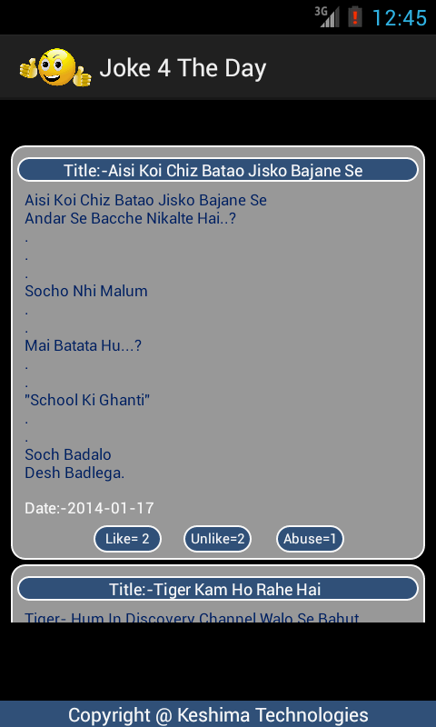 This version of Jokes For The Day Android App comes with one universal variant which will work on all the Android devices.