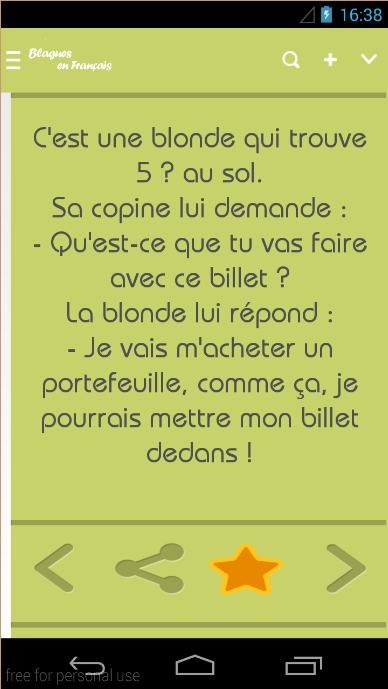 This version of Jokes in French Android App comes with one universal variant which will work on all the Android devices.