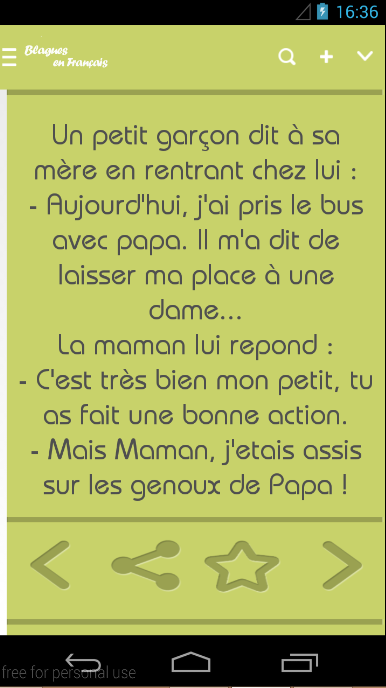 If you are looking to download other versions of Jokes in French Android App, We have 1 version in our database. Please select one of them below to download.