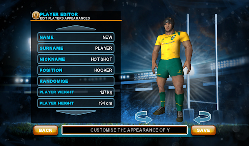 Create your own world of Rugby – customise game length and conditions to satisfy your ideal Rugby match!