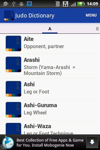 Judo Dictionary is a small pocket book that contains about detail of Judo techniques, This application is usefull for judoka.