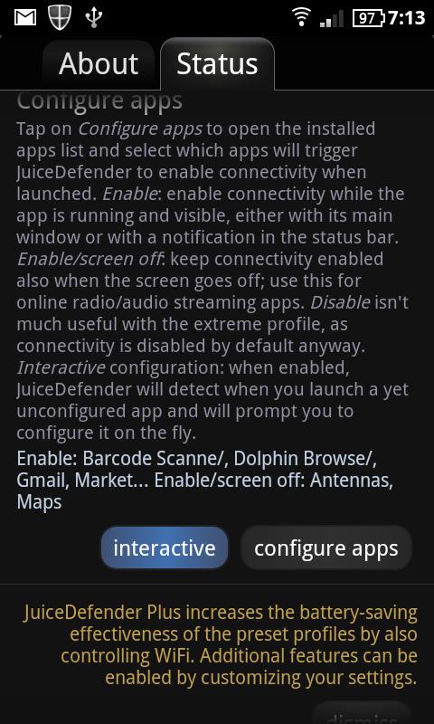 JuiceDefender Plus adds automated WiFi control (also Location-based), Night schedule, and configurable (interactively!) Apps - together these additional features significantly increase JuiceDefender's already impressive effectiveness.