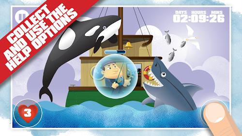 Try to catch as many fish as you can to protect you from the critters, but don't forget to jump the jaws of the hungry sharks! There are things to help you on your trip, but watch out, as day turns to night the sharks really start to get hungry … and there are much bigger things lurking in the depths!