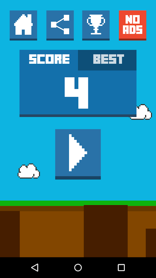 Going forward, Jump! will become harder and harder. When you lose you have the chance to use a "life" to continue the game from the point where you have fell. To earn lifes you just have to watch an ad.