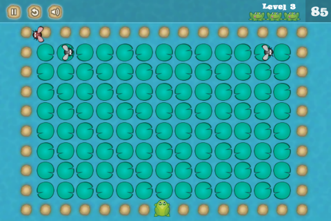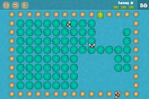 The game field represents a grid of water lily on which the main character - the frog, moves, as well as his enemies - the flies. The entire field is surrounded by small islands on which the main character can also move. Little Frog is controlled by gestures and can move vertically and horizontally. There are two kinds of flies: black, which can only move on the water lily and cannot fly on the shore, and red, which can move on any cells.