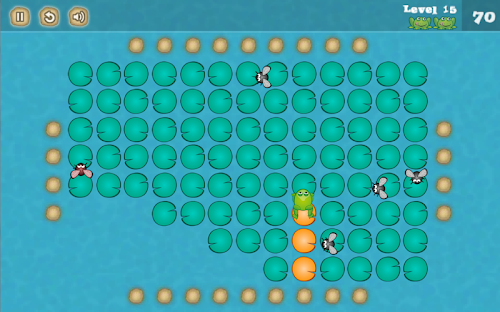 The game goal is to remove from the playing field 85 jugs on each level. From level to level the difficulty will increase: there will appear new flies, and their speed will increase. The same the number of islands around water lilies will decrease, which greatly complicates the task.