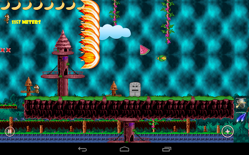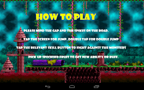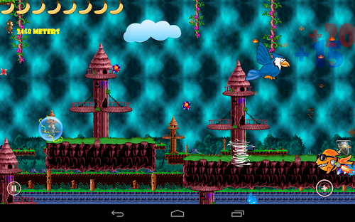 - Pick up specified fruit to get new ability or buff.(Awarding live, whirlwind attack, power shield, assistance via calling a Bulejay)