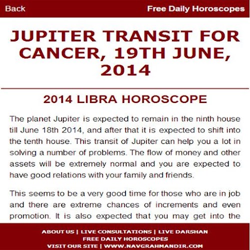 The download is really simple and there are steps to guide you. You just need to follow the simple steps and by this way you will be able to have this App with you. The best part of this App is that you can get complete prediction for Jupiter Transit 2014 for all rashi sign not just cancer. So what are you waiting for?
