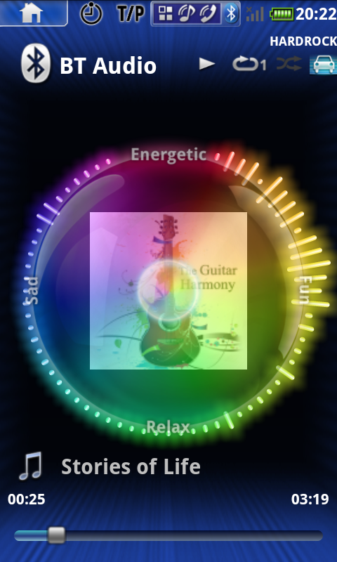 JSMC analyzes all of your songs that are in your Android™ smartphone, and creates a playlist according to your mood. Once the application has completed the analysis of the songs, simply move the “mood ball” to your current mood, and this application will generate a list of songs that most fits your mood.