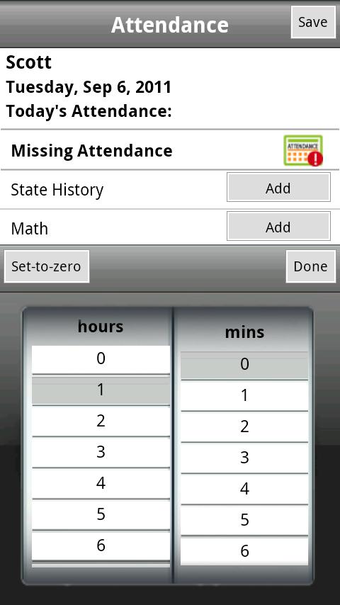 * Easily scroll and pick time to enter your student’s attendance.
