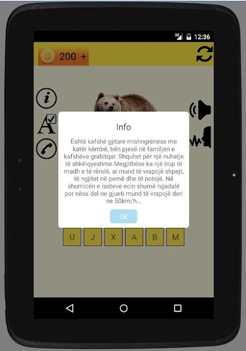 Eshte nje aplikacion i cili mundson ne forme te kuizit femijet tuaj te mesojne emrin e nje kafshe, si dhe shqiptimin e kafsheve ne gjuhen shqipe.