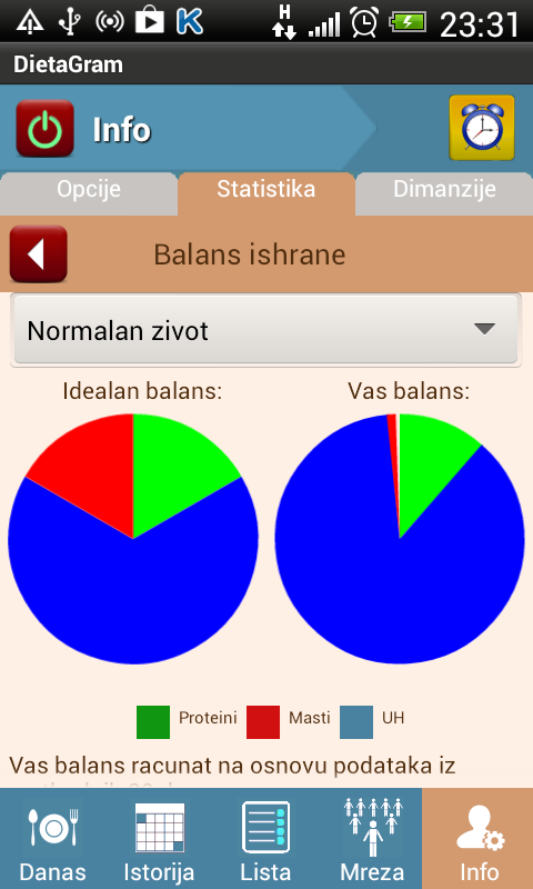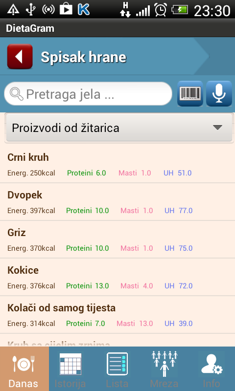Dnevni kalkulator kalorija, proteina, masti i ugljenih hidrata. Alarmi