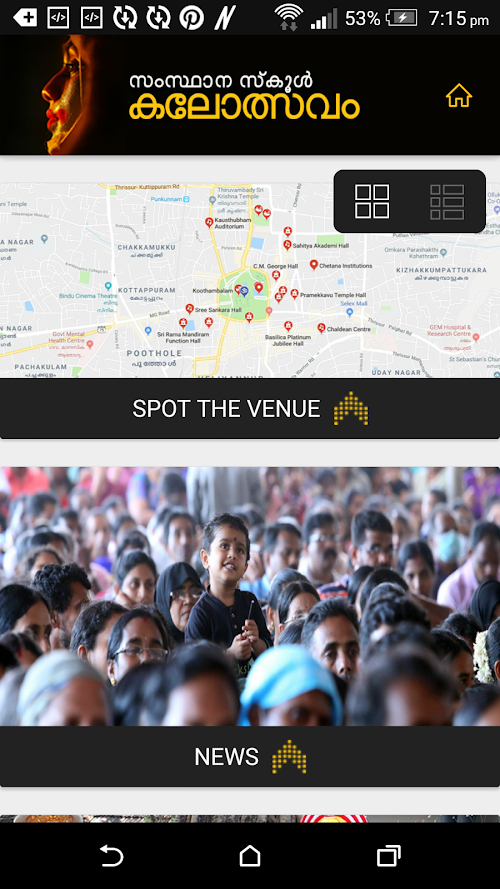 Kerala School Kalolsavam is an annual event conducted by the state government of Kerala, featuring several art competitions for high school and higher secondary school students of Kerala. This application will provide Photographs, Program Schedule, Route map and related informations.