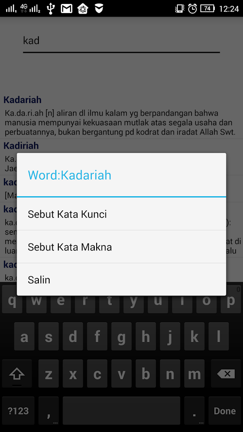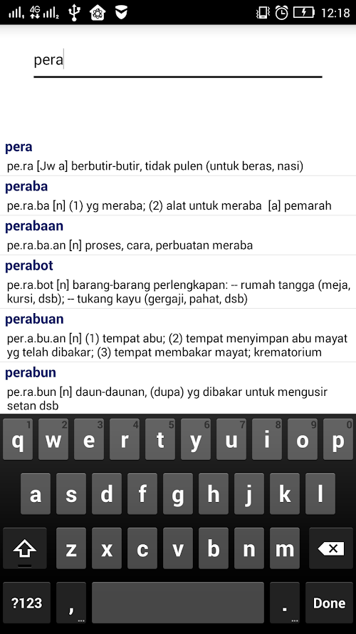Applikasi ini tidak memerlukan capaian internet untuk digunakan. Boleh digunakan dimana-mana sahaja dengan tenang.Big Indonesian Dictionary (KBBI) Language Center is the official Indonesian monolingual dictionary that came with the designation in Indonesian avail.