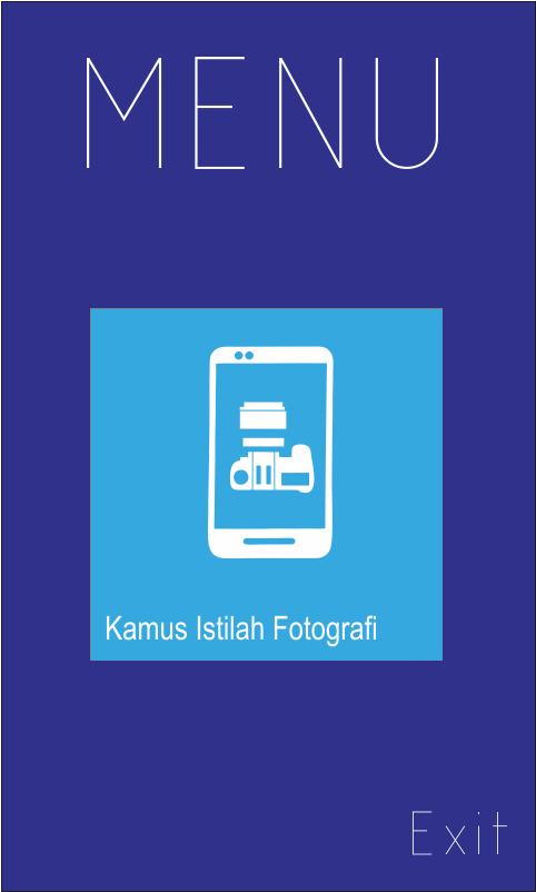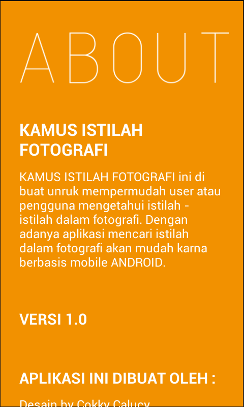 aplikasi ini adalah aplikasi kamus istilah dalam fotografi, berfungsu untuk mengehtahui istilah yang ada di dalam dunia fotografi.