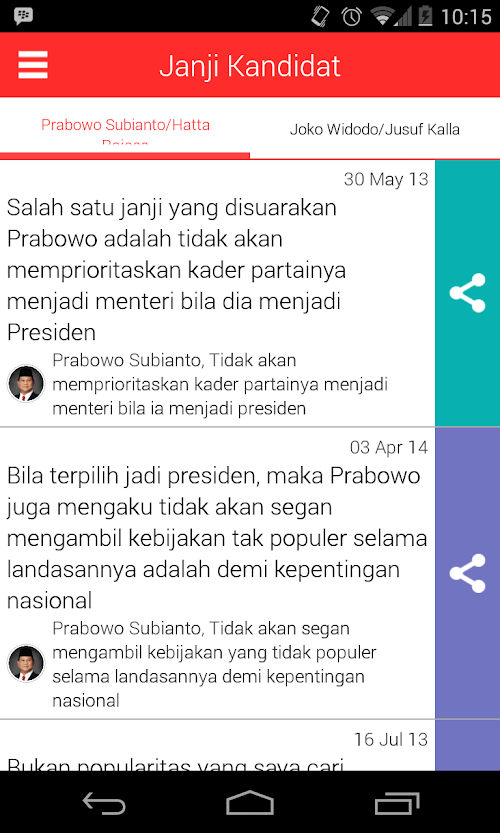 - memberikan kesempatan kepada pengguna untuk memberikan apresiasi terhadap konten alasan / dukungan yang memang berkualitas dan punya kredibilitas yang dapat diakui. Semakin tinggi nilai kualitas dan kredibilitas sebuah dukungan/alasan akan semakin tinggi juga posisi dalam list dukungan /alasan seorang calon