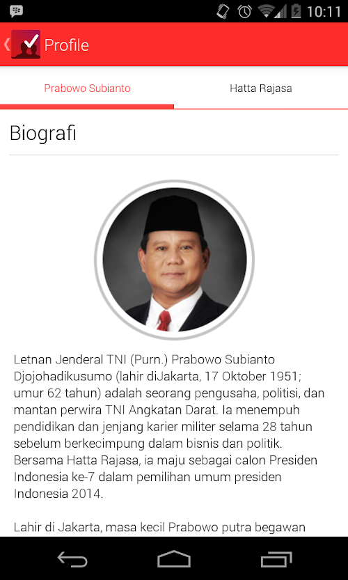 - memberikan informasi detail mengenai identitas dan riwayat pasangan capres cawapres tertentu