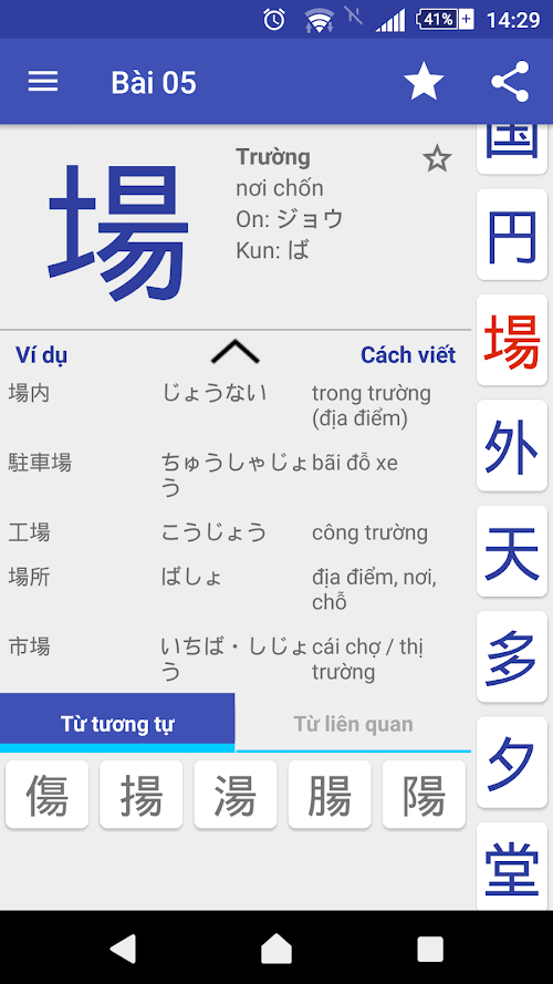 - Flashcard: Di chuyển giữa các chữ Kanji bằng cách vuốt sang ngang.