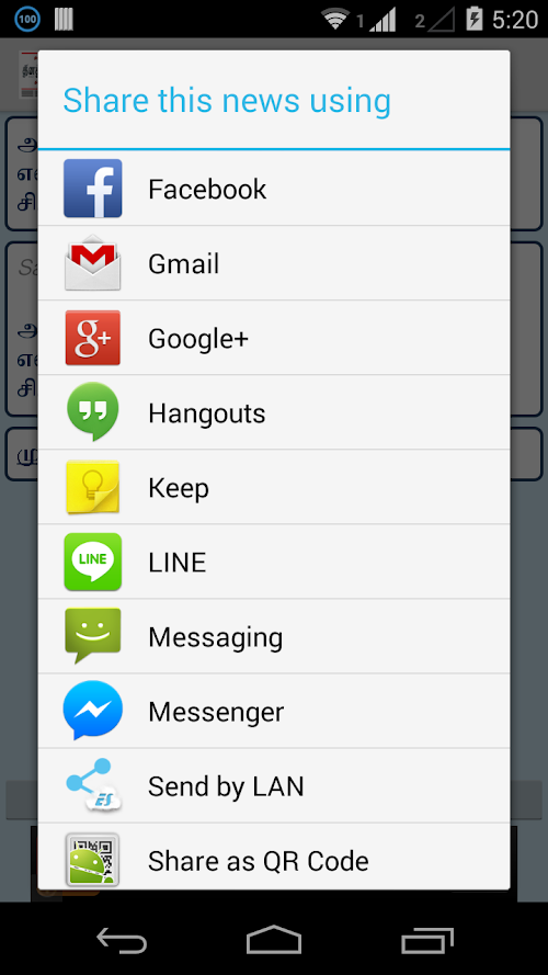 You can share the news by SMS, email, etc. also through your installed apps like Facebook, Google+, etc.