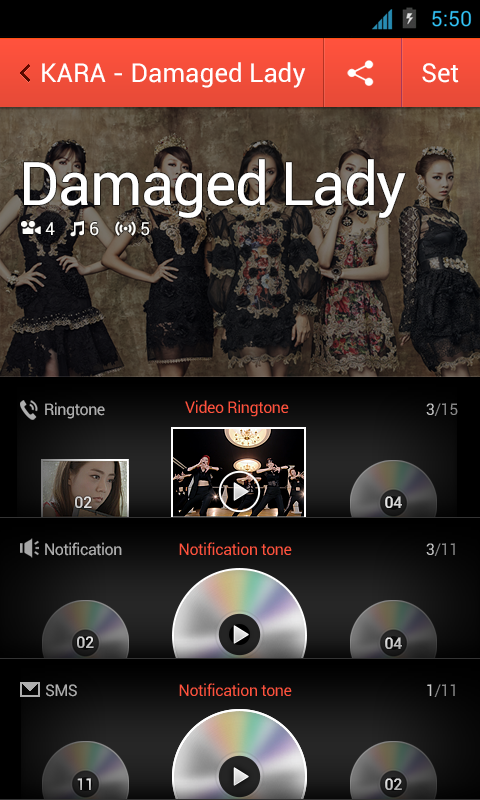 ▶ Launch dodop pop and select “Package” menu, or touch the icon of downloaded package app and set video ringtone & SMS/ notification sound!