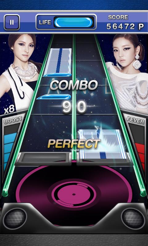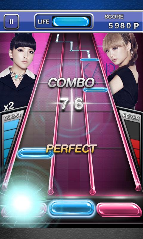 KARA SHAKE offers traditional "TAP”style of gameplay as well as a new “SHAKE-WHEEL” mode, using a seamless-gesture technology developed by dooub. The “SHAKE-WHEEL” mode will make you feel like a DJ scratching the turntable!