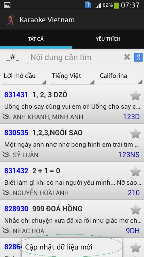 * Ứng dụng có phần cập nhật dữ liệu nhằm đảm bảo danh sách bài hát luôn mới nhất, các bạn nên chú ý cập nhật khi có vol mới!