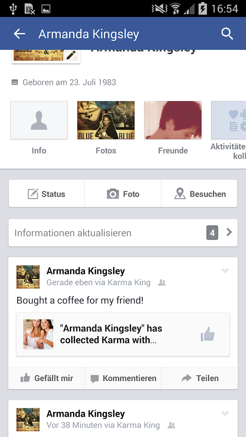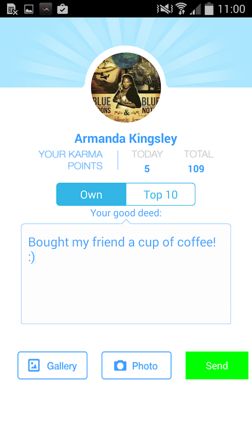 Help your neighbors or invite your friends to join you for a cup of coffee. Karma King enables you to share your good deeds with your friends and family.