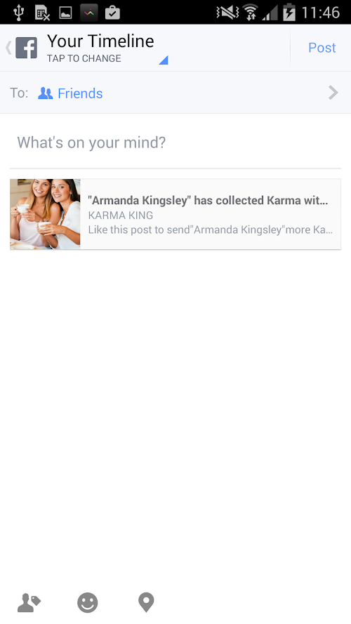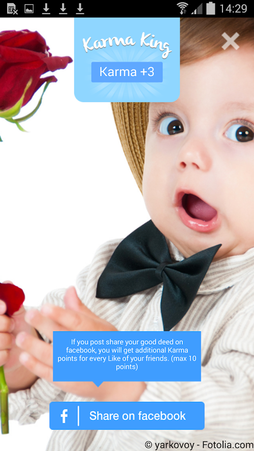 ✓ If you do good deeds in your everyday life, you can share them as a picture or text on Facebook or just within Karma King.