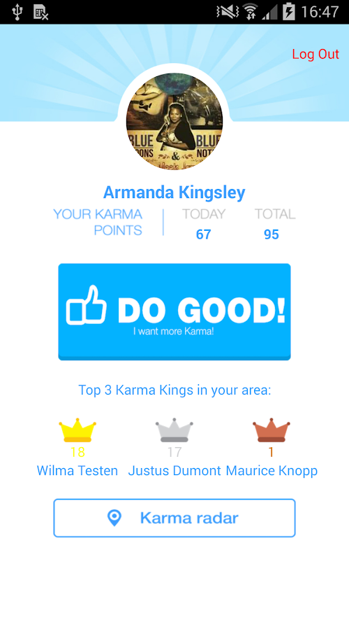 ✓ The Karma Radar shows which Karma heroes in your area are also doing good deeds.