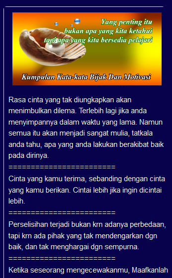 Jangan Lupa Kasih Rate&Revienya ya... Thanks!!!Set Various Words of Wisdom and motivation in everyday human life are very useful as the life and soul of encouragement. Among them;