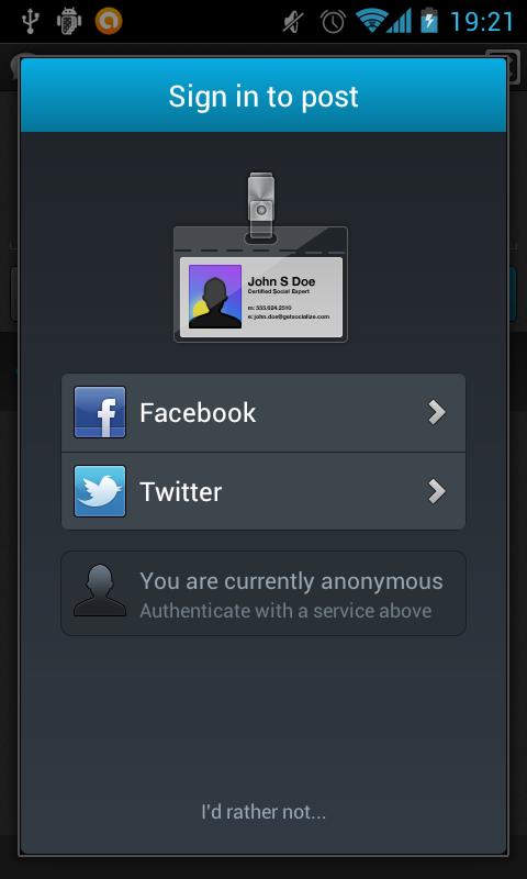 Für die FaceBook/Twitter-Funktionen ist eine Internetverbindung und ein Gerät mit mindestens MDPI Pixeldichte (typischerweise mehr als 320x240 Pixel Auflösung) erforderlich.