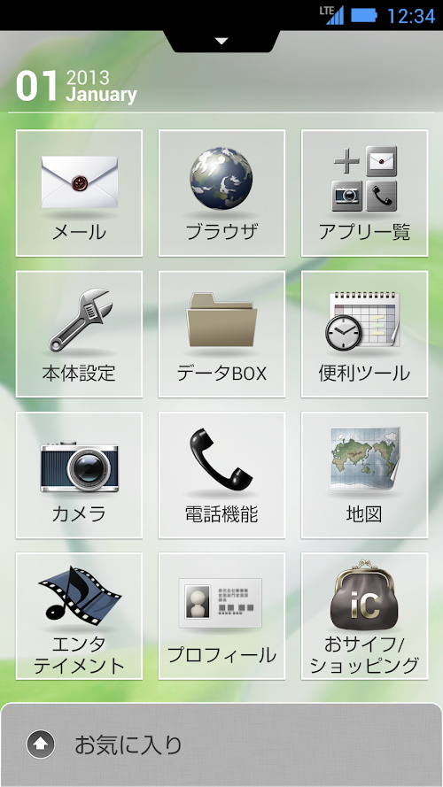 "Keitai mode" is the home app of ELUGA X(P-02E).