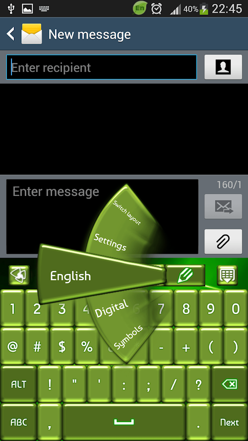 The Green Candy Keyboard Theme comes in a majestic High Definition design, combining sleek styling and efficient functionality, which is why it's a major hit among users who use their device frequently.