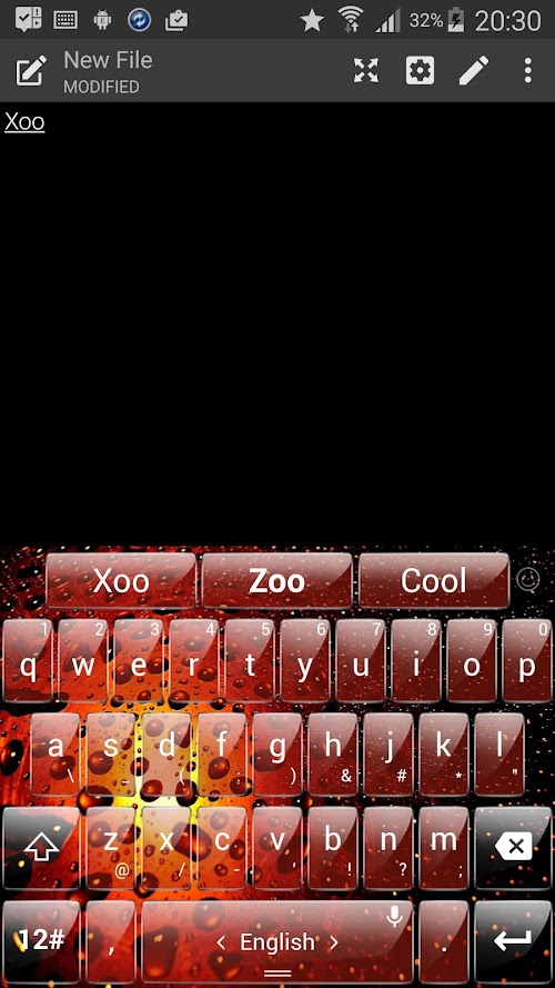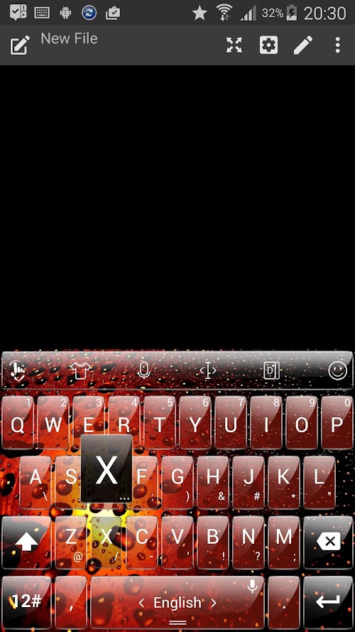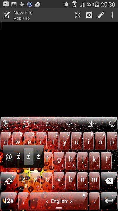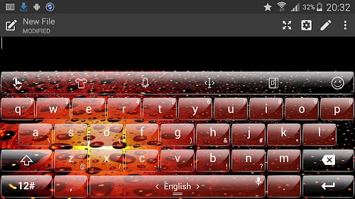 This is a theme with glass keys and a red water drops energy background for TouchPal Keyboard application: please install TouchPal Keyboard main app to use this theme.