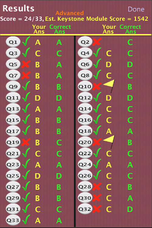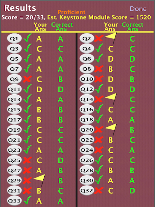 * Scoring screen with estimated Keystone Biology score