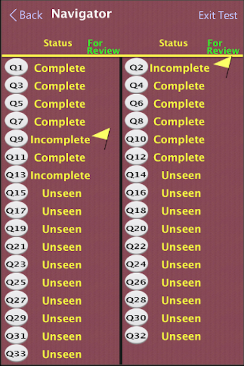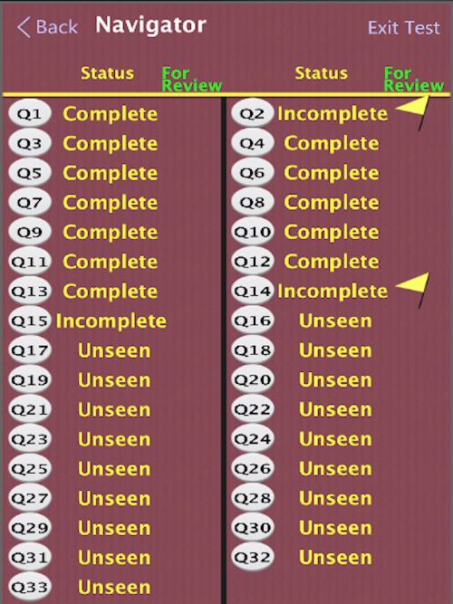 * Navigator to select questions in any order and status