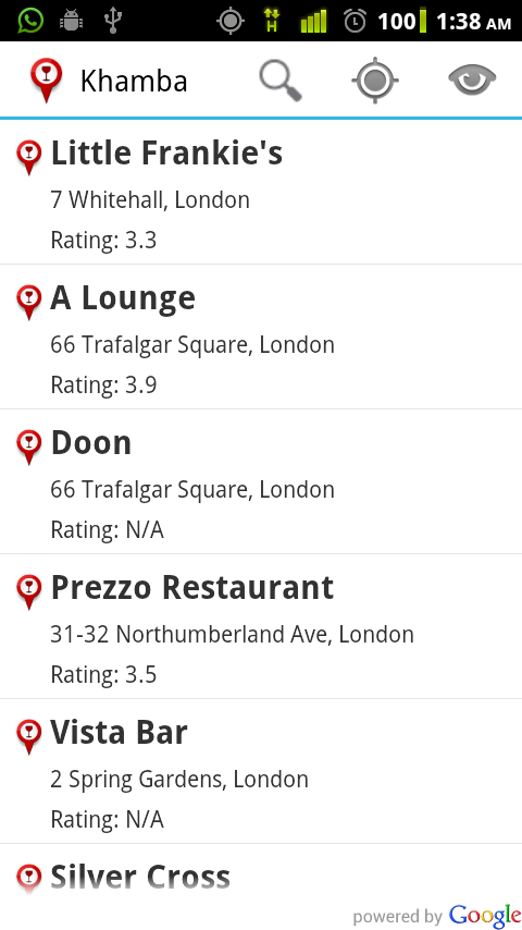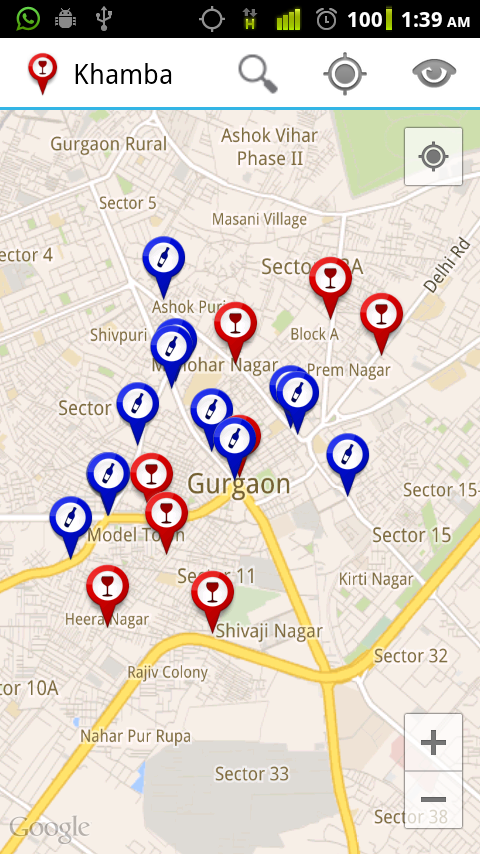 Khamba is an application which will help you to locate Bars, Pubs, Resto bars Alcoholic shops like( Beer , wine, whiskey).This will also give information about directions when u click on the address. This will also assists with calling facility.