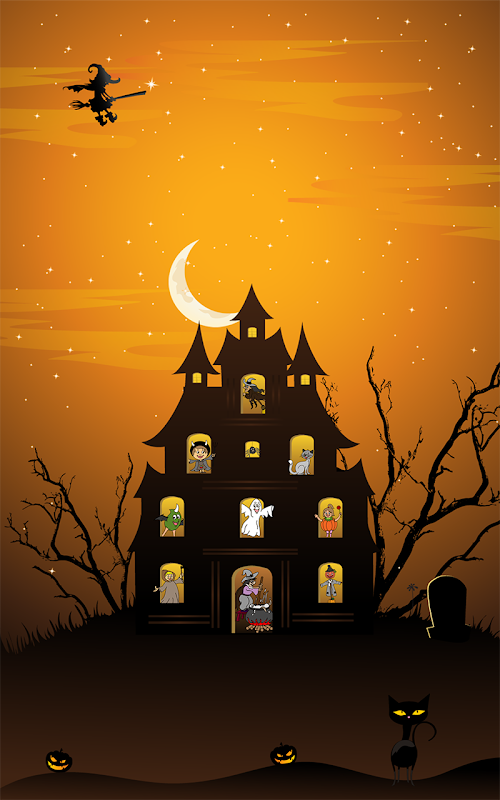 Enter the app and walk into a scary night, meet the funny witch, the angry cat, the wise owl and the grumpy pumpkin. In the haunted house, look at the figures in the windows and choose one of the 20 fun coloring pages. While coloring, you can enjoy additional funny surprises - we will not tell you what they are, just install and see...