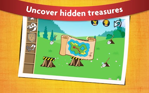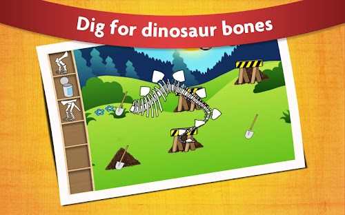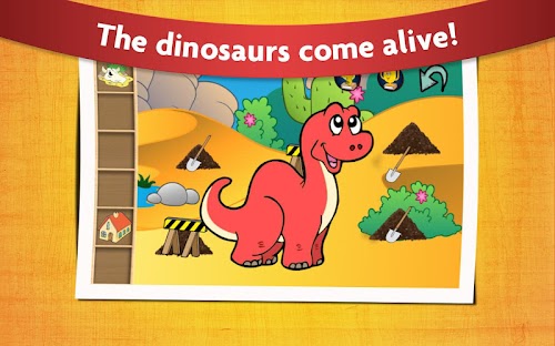 This is a simple game for toddlers. You dig for dinosaur bones by rubbing the screen on the marked spots. While digging, you find dinosaur bones and random items, and when you have found all the bones, the dinosaur comes alive.