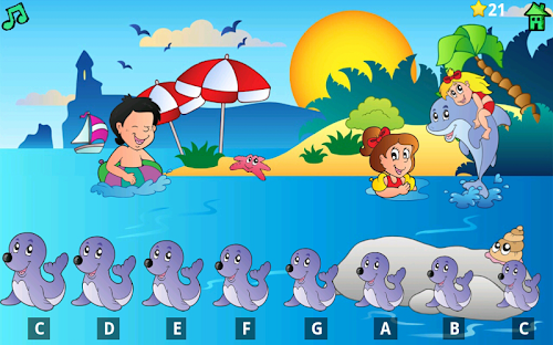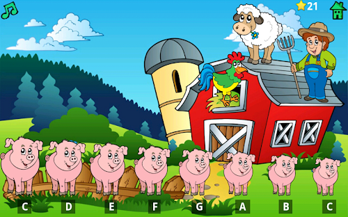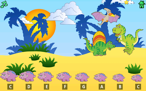- The game encourages basic manipulation skills (touch), musical skills (scale of notes) and imaginative play