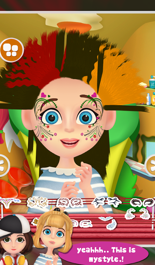 Become the greatest hair dresser of them all! From cutting, washing, drying, coloring to curls, streaks, spikes, this game has it all. Style hairs like you have never before. The Kids hair Salon is great game that will delight any hair stylist. The Kids Hair Salon allow you to easily prepare and wash your customers hair and add all sorts of accessories which will make look absolutely cool...!!!