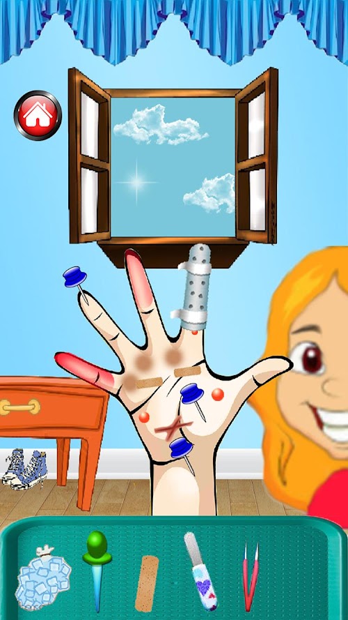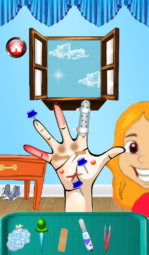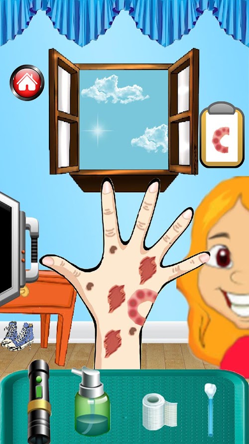 Be a magic doctor, use your skills and treat your patients with painful expression and hurt hands. Be quick! Biggest rush of the patients is waiting outside your clinic to be treated and recover from hand problems. You have to become a hand doctor and a nail doctor as well to treat all the wounds, rashes, pimples and broken nails. Remove the dust, kill the germs, get rid of the blood & bacteria and apply bandages. Use all the medicine and medical tools on little patients wounds and pain for relief and recovery.