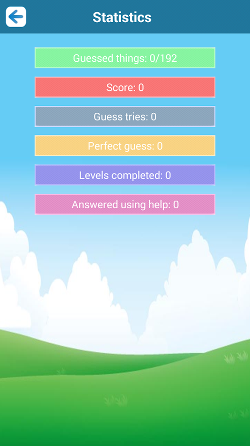 Statistics to show: score, finished things (guess), guess tries, completed levels (finish) and more...