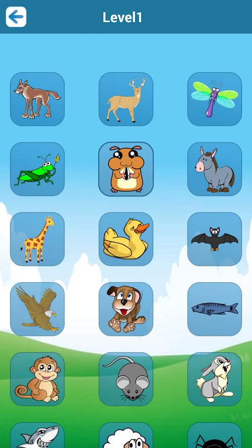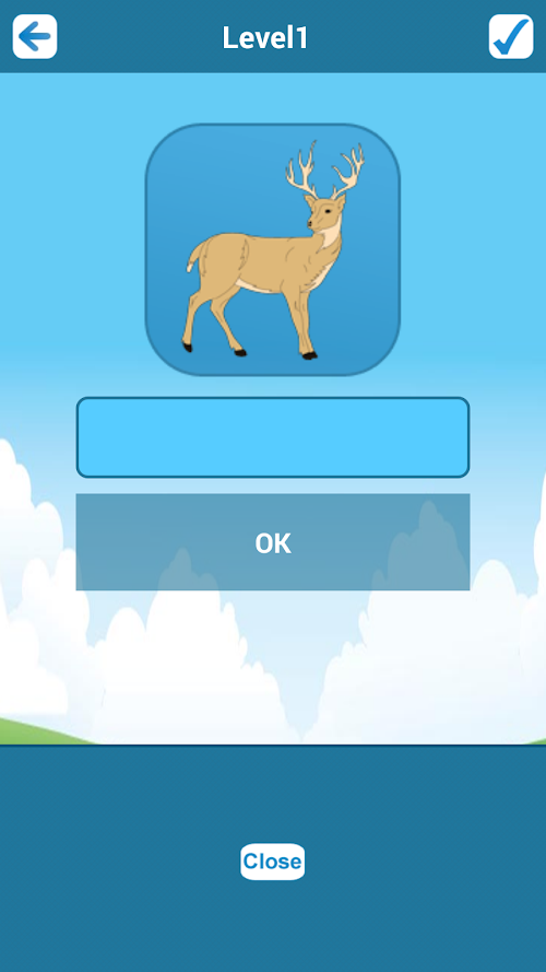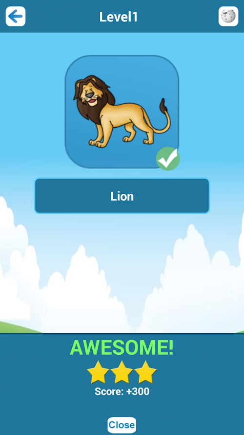 If your kid couldn't know what is in the picture, he can click on the right top button to show the answer.