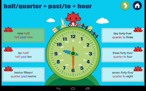 Being able to tell the time is a very valuable skill for kids. On a clock, we measure time in hours and minutes. There are 60 seconds in a minute, 60 minutes in an hour and 24 hours in one day. Our cute cat will teach you how to telling the time step by step. Also Qcat give the kids a chance to practice telling the time from easy to difficult.
