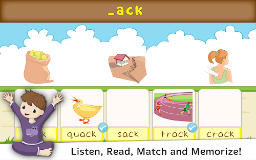 Rhyming is creative and a fun way to play with language. In Kids Learn to Read, Spell & Rhymes, kids will learn word families, CVC, short and long vowel words and spelling through three wonderful games. Kids Learn to Read Rhymes is a delightful game that invites preschool-aged children to blend sounds into words, read and form simple words, identify spoken words and learn word families. Rhyming is a precursor to learning how to read and write. With a successful completion of each level in Kids Learn to Read Rhymes, kids will have a strong sense of phonemic awareness and a solid groundwork for written language.