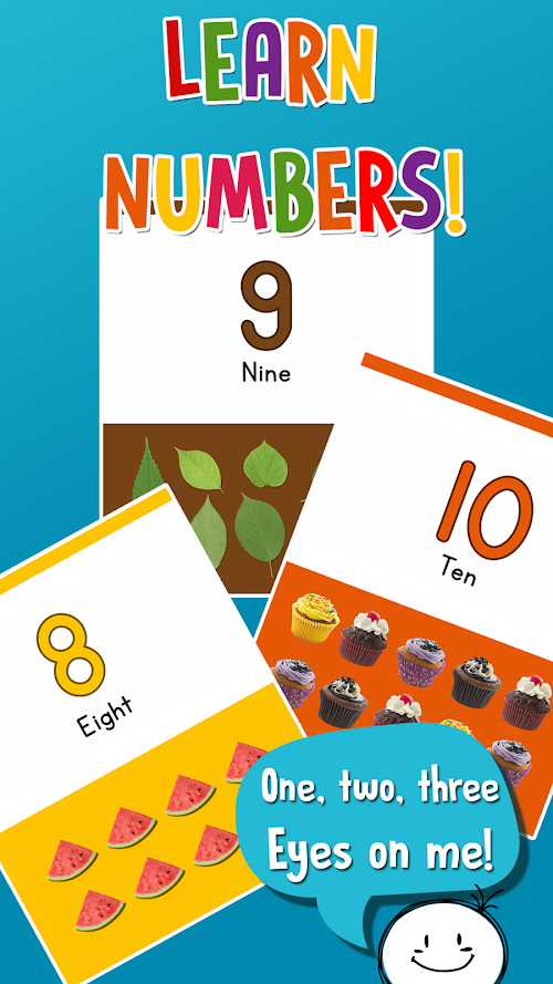 - Numbers flashcards and counting game: Pre-K kids will learn numbers up to twelve and practice them with the counting game.