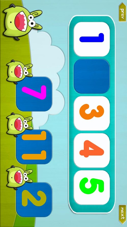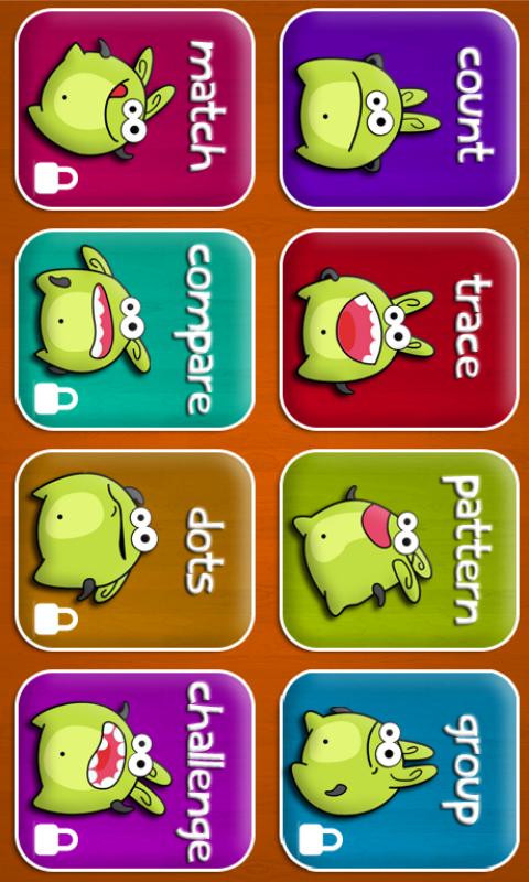 The simple and clean user interface is designed to be child friendly, which allows to play without help from an adult. An animated monster gives verbal instructions and feedback to the child which makes learning fun.