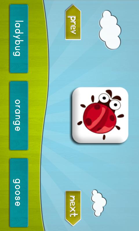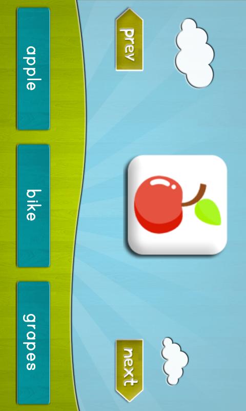 * TEST: This application contains the picture of objects. Kids are asked to pick the correct word for the displayed object. There are images and sounds associated with each word and letter.