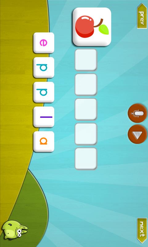 * WORDS: This application contains draggable letters which needs to be arranged to construct full words. There are images and sounds associated with each word and letter. Constructing words from available letters is a fundamental step in learning reading and its a creative and fun activity for preschool kids to improve vocabulary.